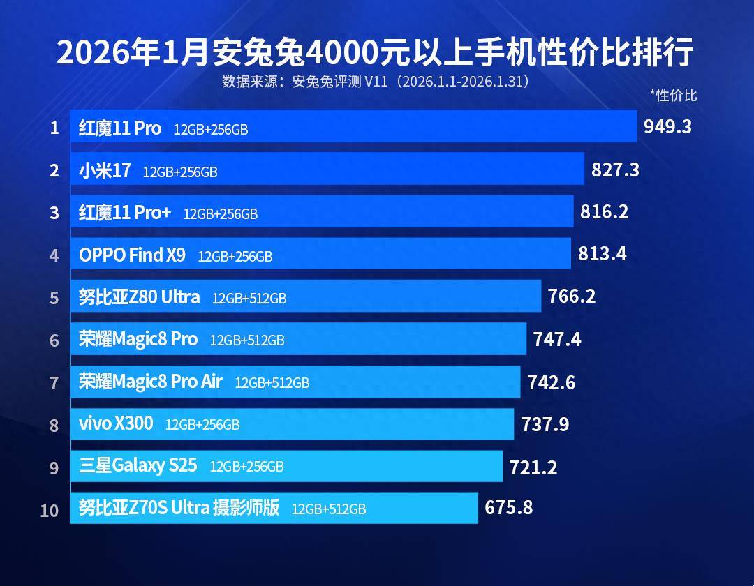97国际-至尊品牌,源于信誉-今天分享的是2026年1月安兔兔旗舰手机性价比榜单,价格区间是4000元以上,以某东自营平台的售价为准。因为电商平台价格波动频繁,所以该榜单仅供大家参考,需要提前说明的是,该榜单仅收录正在开售的机型。在分享榜单机型的同时,亓纪也会附上该机的核心卖点和实时价格,方便大家进行选购和对比,以下是榜单的详细内容。